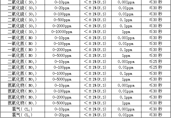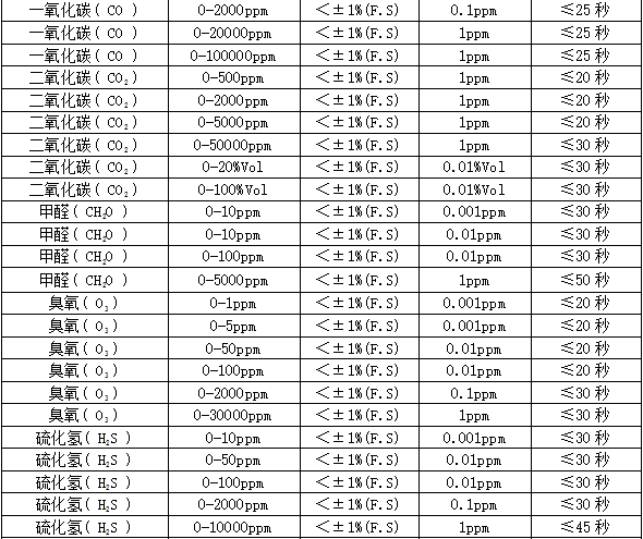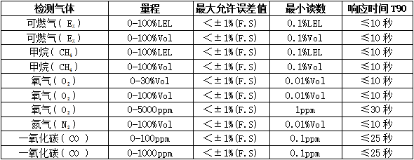響應(yīng)時(shí)間:T90≤20秒恢復(fù)時(shí)間:≤30秒